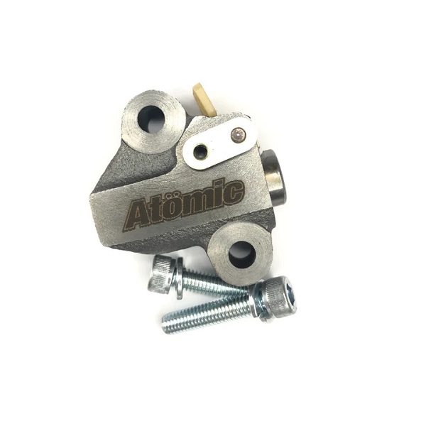 The Atomic Heavy Duty timing chain tensioner features a larger oil feed port to provide more oil pressure to the ratchet and a stronger pawl for more secure engagement. The symptoms of a faulty tensioner are intermittent noises coming from the front/top of the engine, especially when held at a constant RPM.