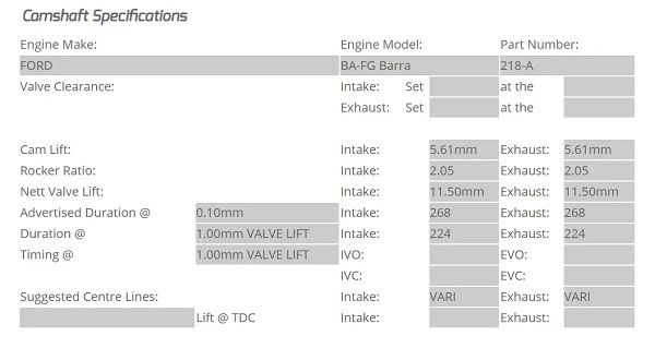 218-A Camshaft Set: